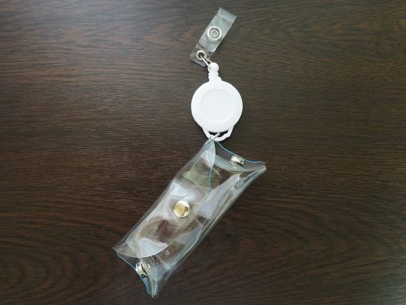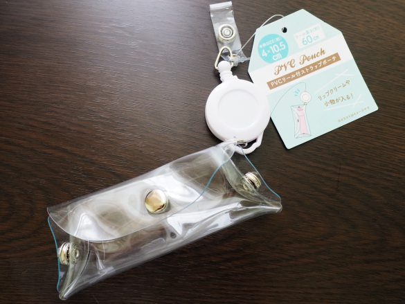 今回注目したセリアの「PVCリール付ストラップポーチ」は、クリアポーチにビヨーンと伸びるリールが付いたタイプで、使い勝手がいいとSNSでも話題になっています。