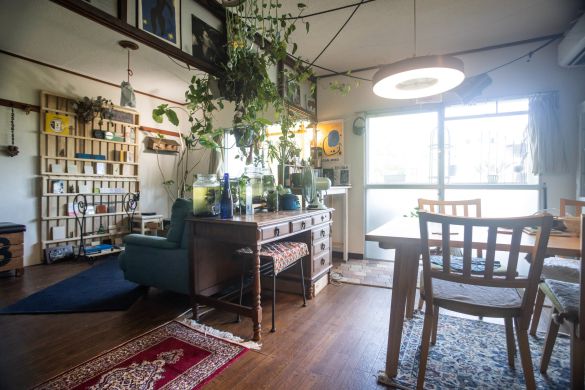 2人のお子さんが独立した今は、現在のパートナーと暮らしながら、観葉植物や雑貨を組み合わせた、隠れ家カフェのような空間づくりを楽しんでいます。