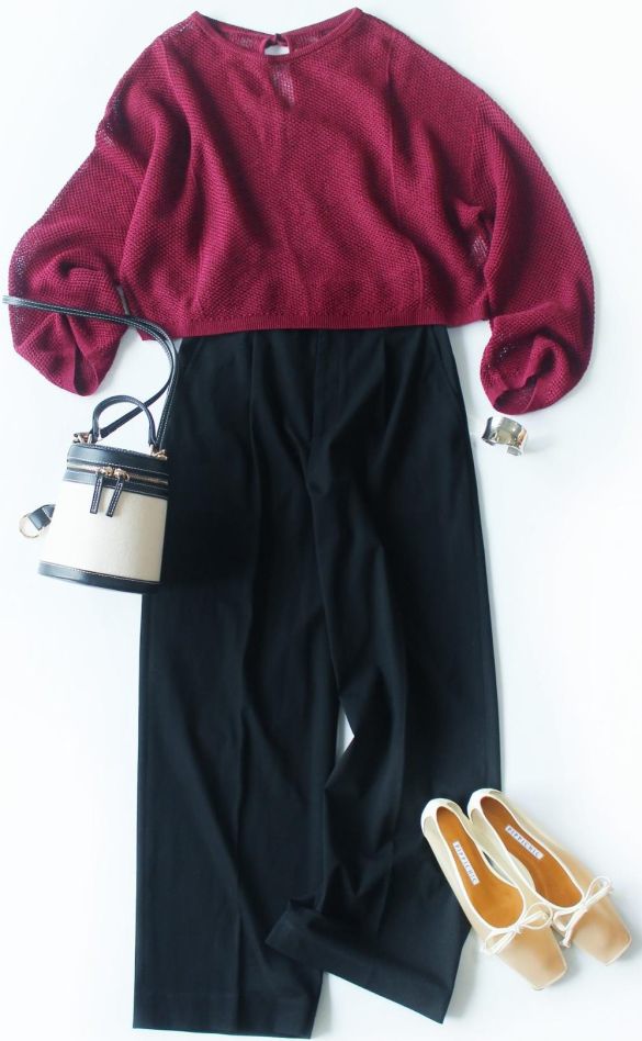 バーガンディは大人っぽい色味なので、着ると老けて見えそうなのが心配なところですが……思い切って黒・グレー・ブラウンなどと合わせて、シックに着るのが今年っぽいと思います。
