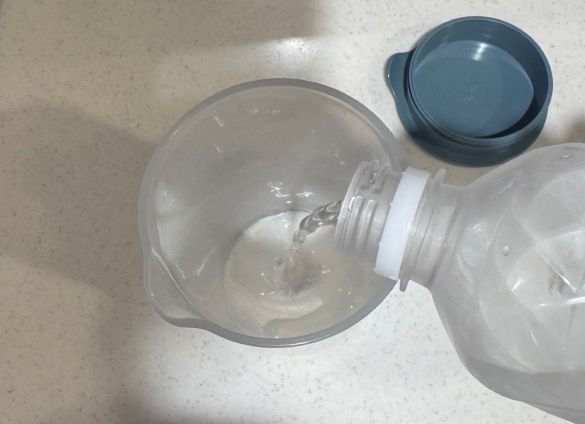 内容量が少ない場合は縦ではなく本体を左右に振るだけで十分混ざります。縦にしっかり振りたい時にも、注ぎ口とフタの注ぎ口カバー部分をぴったりと合わせて、人差し指と中指で上からフタを抑えるようにして振ると漏れを防ぐことができます。