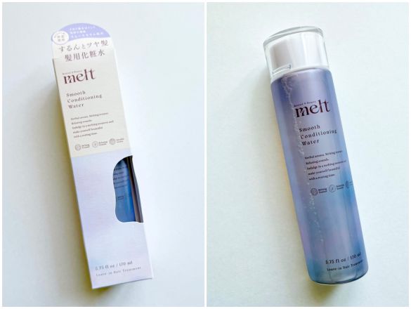花王「メルト(melt)スムースコンディショニングウォーター」(170ml/税込1,430円)は、髪用の化粧水。うねり髪の深部までうるおいを補給&毛流れ補整で、するんとなめらかなさらツヤ髪へ導くアイテムです。
