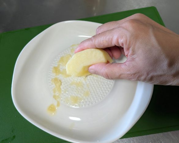 だしをひくことなく、自作のおいしさを簡単に味わえないだろうかと試行錯誤を重ねてたどり着いたのが、“りんごと白だしを組み合わせる”というアイデアです。