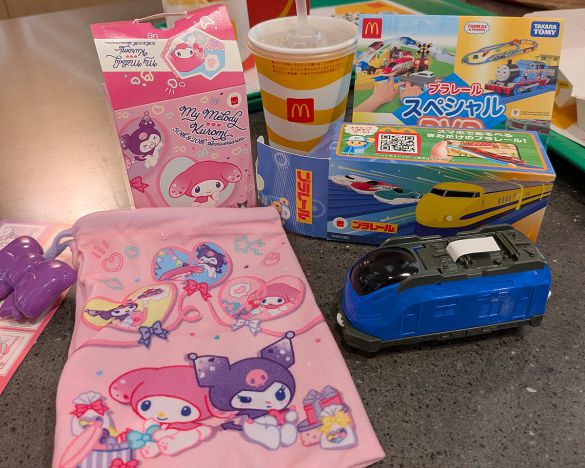 ブランド品やレゴなどの玩具の転売は普通にあるけれど、ハッピーセットはあまりないと思うよ。大して稼げる額じゃないよね? 日本、大丈夫なの?