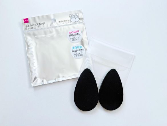 大人の肌はツヤが必要だけれど、テカリはいらない。暑苦しく見えてしまいます。そこで、このところ出番のなかったあぶらとり紙を使おうかと思ったものの、ゴミが出るし、皮脂を取りすぎるのも気になる……と迷っていました。そんな時に、100円ショップのダイソーで出会ったのが「オイルオフスポンジ」。