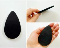 柔らかい素材で、肌当たりも優しく、モチモチしていてずっと触っていたくなる心地よさ。大きさは手のひらに収まるサイズ。コンパクトタイプのパウダーファンデーションにセットされているスポンジぐらいの厚みです。しずく型になっているので、小鼻の周りなど細かい部分にも使いやすいなど、1個50円とは思えないほど気が利いています。