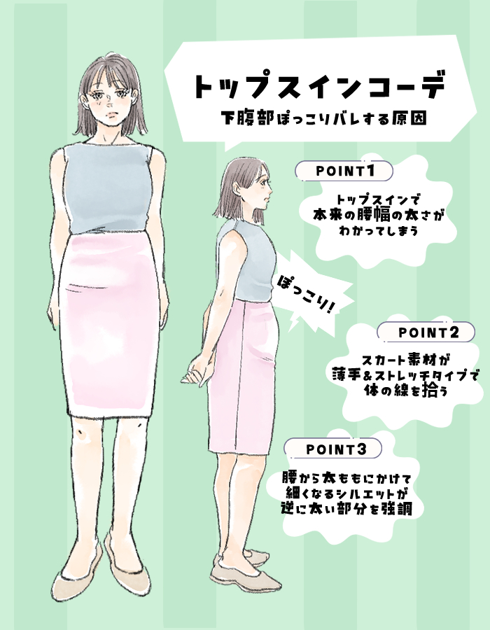 トップスインをして下腹部が目立つのはナゼ?