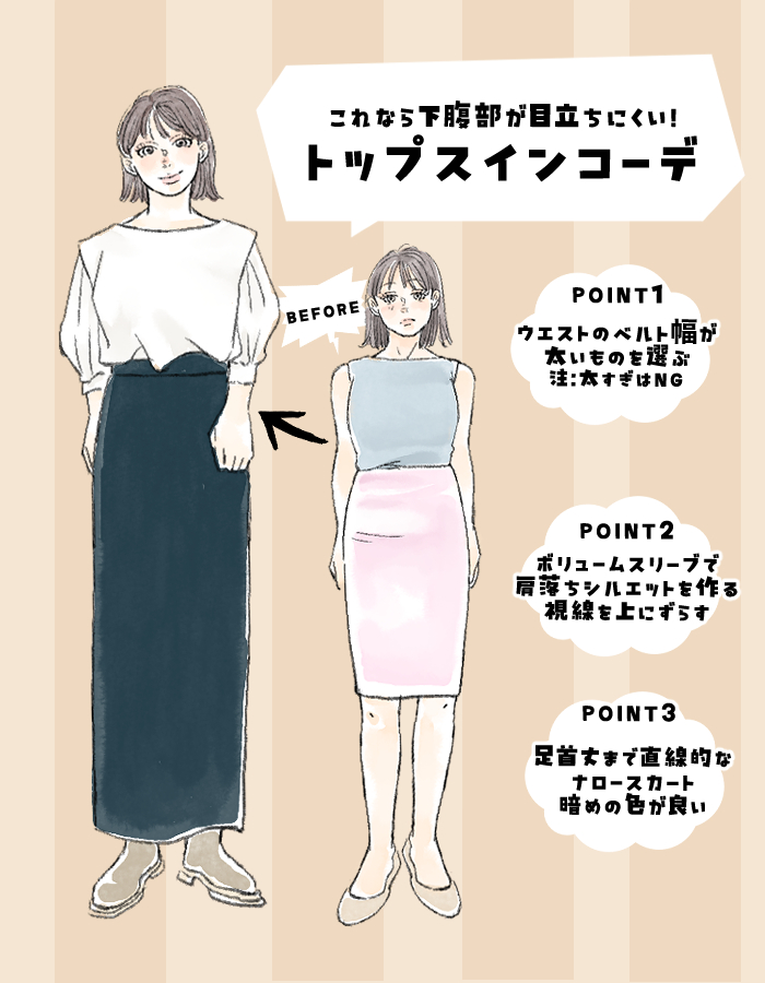これならOK! 下腹部ぽっこりでもできるトップスイン