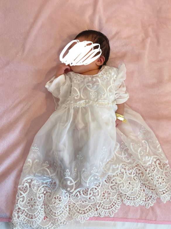 ウェディングドレス自作して、赤ちゃん産まれたらそのドレスをバラしてベビードレスにしたんです。