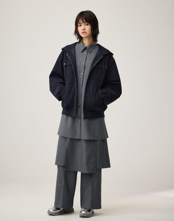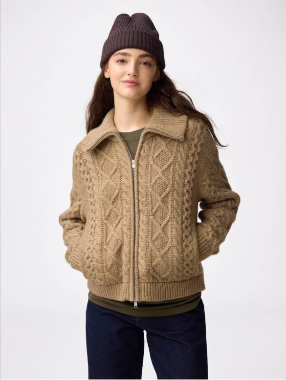 リブダブルジップカーディガンは、カーディガンの中にTシャツを重ねて着こなしを楽しめますが、丈がやや短めです。大きさにゆとりがありつつも、丈が短すぎない方が品のある大人の印象を与えます。