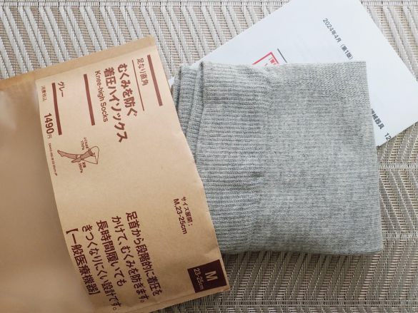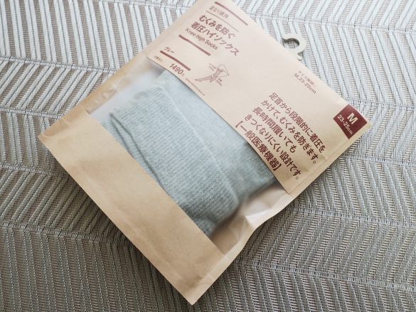 今回レポートするのは、無印良品の「【足なり直角】むくみを防ぐ 着圧ハイソックス」。