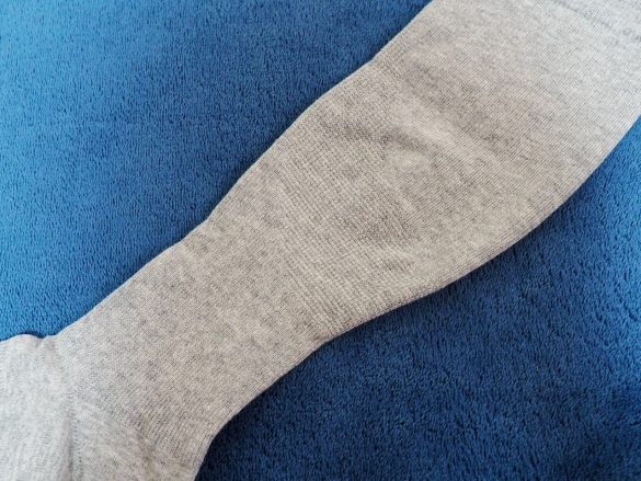 ふくらはぎの部分を横から見ると、筋肉の盛り上がりが再現されていて程良くフィットしてくれそう。モコッとしたカーブにさしかかる部分には、ゴムが入っているようで、作りがひときわしっかりしています。