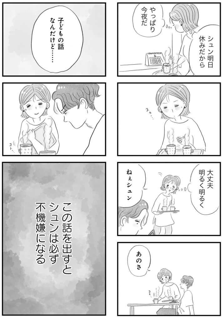 そのうち、夫婦関係はギクシャクし始め、ついには離婚の危機まで…。でもシュンが子どもをほしがらないのには、深い理由があったのです。