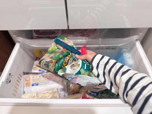 そのため下敷きになってしまっているものも多く、何がどこにあるのか把握できていない有り様。使いかけの冷凍ブロッコリーの袋が2つも出てきたり、いつからあるのかわからない冷凍うどんが発掘されたりと、まるで秘境の地と化しています。