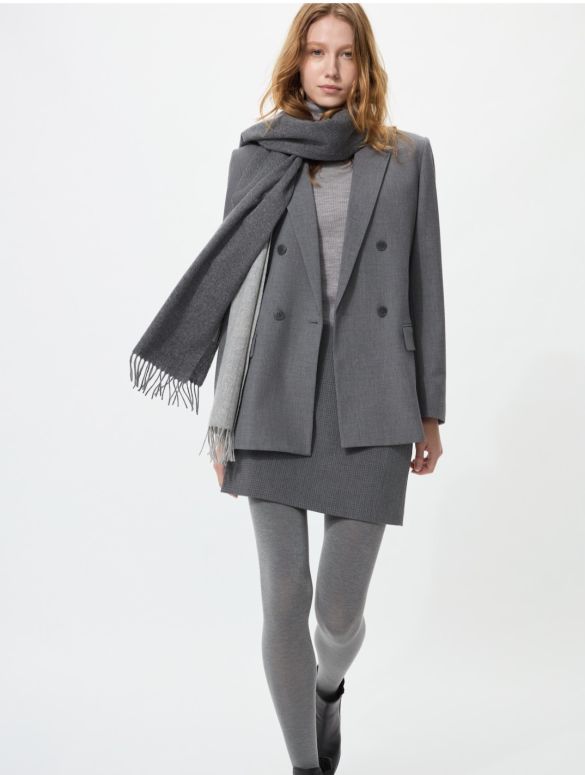商品名:超極暖ヒートテッククルーネックT/長袖 商品番号:478965 価格:税込2,990円 「ヒートテックはインナーのイメージが強いと思いますが、首元が締まったデザインのクルーネックはインナー以外の着こなしも楽しんでいただけます。特に超極暖ヒートテックTは生地がかなり厚くしっかりしているので、カットソーとしても着られますよ。  ニットの下に超極暖を着て、あえて首元や裾を見せる着方は今年っぽくなり、おすすめです」(R氏、以下カッコ内同)  R氏に薦められたので超極暖ヒートテッククルーネックTを初めて着てみました。ヒートテックより1.5倍暖かい極暖ヒートテックTよりも透け感が少なく、カットソーとしても使えそうです。超極暖の裾や首元をトップスからあえて見せる着方ならグレーまたは黒の方が下着感がなく着られると思いました。