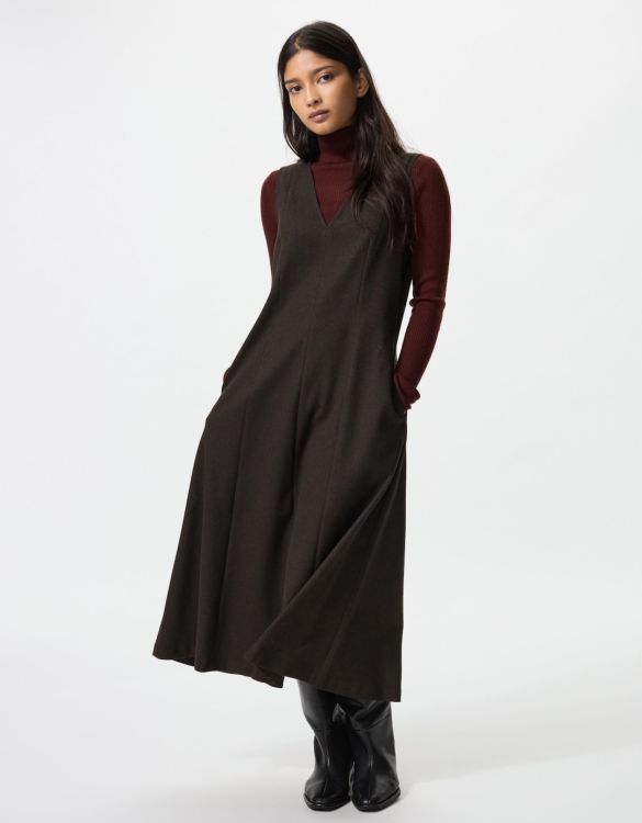 リブ編みなので1枚だけでも着られますし、ワンピースやカーディガンとのレイヤードにも使えるので着回し力抜群です。ジャンパースカートの中に着てもすっきり。