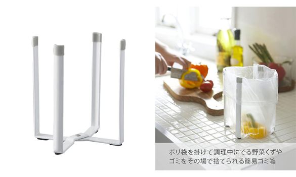 ポリ袋をホルダーに引っかければ、調理中に出るゴミをサッと捨てられて便利ですよ。