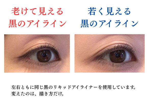 では、スタンダードな黒のアイライナーを、どのような使い方をすれば、老け見えせずに目元を引き締められるでしょうか。試行錯誤を繰り返した筆者がおすすめするのは、次に紹介する3つの方法です。