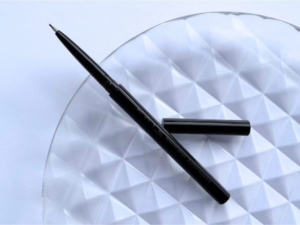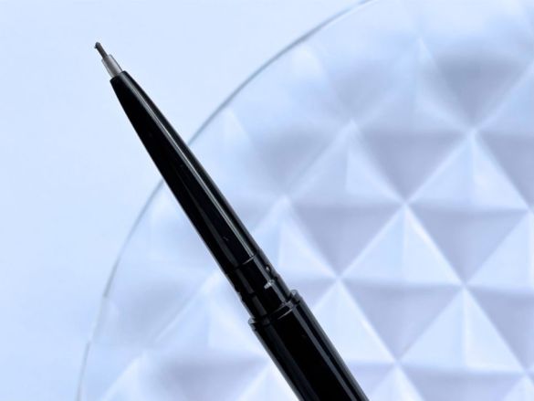 そんな不満を見事に解決したのが、「ケイト アイブロウペンシルスーパースリム0.8」。アイブロウペンシルでは筆者が初めて見たシャープペン型。直径0.8mmの超極細芯を少しだけ繰り出して使うのですが、芯を支える部分があるので、折れにくいです。