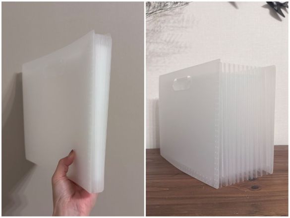 もちろん単体使いもOKですが、A4サイズのものはファイルボックスと併用することでボックス内に仕切りを作ることができます。筆者が購入した12ポケットタイプは月ごとのレシート管理などに最適。