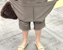 トイレに行くときなどは、表地と裏地を一緒にくるんと裏返すとパンツの裾が仕舞えます。「トイレで裾が下に着くのが嫌」とワイドパンツを敬遠してきた人も穿きやすいはず。