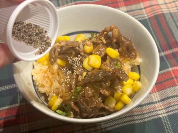 ぎっしりと敷き詰められた甘いコーンが、しっかり味のビーフとの相性抜群!甘じょっぱい味わいが万人受けする美味しさでした。家族でシェアしてみると、お茶碗4杯分くらいでした。