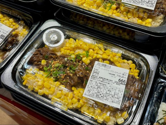 ガツンと満足感あるスタミナご飯の「ビーフガーリックライス」はロピアの人気メニューのひとつ。香ばしく炒めたガーリックライスの上に、柔らかく煮込まれた牛肉がたっぷり。ブラックペッパーがアクセントになって食欲を一気に引き上げてくれる1品です。