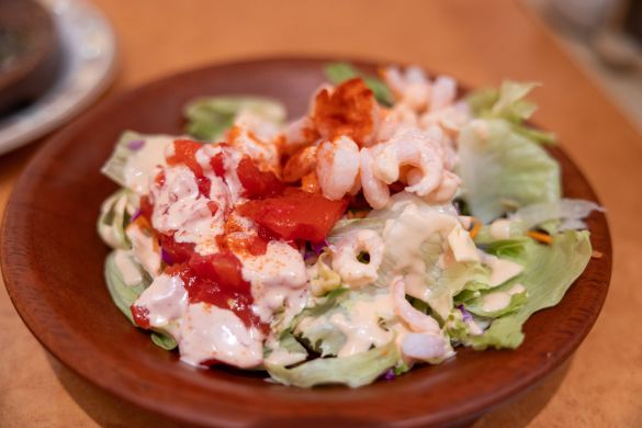 そして4位にはフレッシュな野菜とプリプリの小エビが嬉しい「小エビのサラダ」。税込350円ながらボリュームがあり、女子会やランチの定番メニューという声が寄せられました。「ドレッシングが美味しい」「シェアしやすくてちょうどいいサイズ◎」と、サイドメニューとしてもトップクラスの人気です。