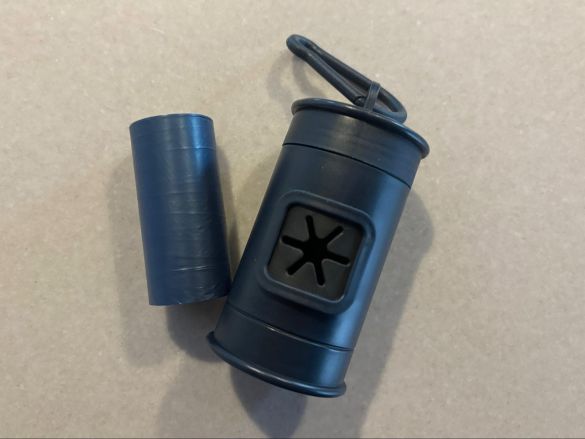 袋は穴から取り出せるようになっているので、ロールを引き出して使います。これまで見たことのある携帯用ゴミ袋ケースと大きく違うのが、取り出し口部分がゴムになってストッパーの役割をしてくれている点。急いで袋を取り出したい時、スムーズに袋が出せるのが嬉しいです。
