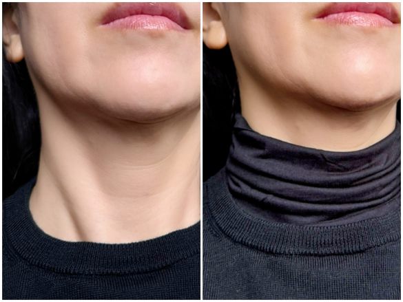 首にシワがないと