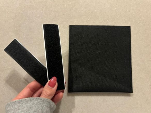 まずは面ファスナーの凸側をポケットに貼り付けます。