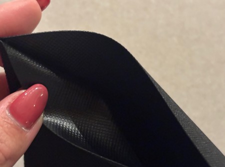 ポケットの材質は、ポリエステル、塩化ビニル樹脂、ナイロン。黒いバッグに付ければ悪目立ちすることなく使えるのも◎!内側は防水加工のようになっています。