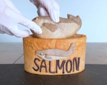 Ran:缶詰の外側に書いてある「SALMON」の文字もパンでつくったのですが、いざ缶詰を開けようとしたときに一文字とれてしまい、チョコレートを使って急遽くっつけたんです。ナイフで缶詰を開けるとき、振動でその一文字がとれてしまわないか実はハラハラしていました(笑)。ちなみに、製作には4~5時間くらいかかっています。