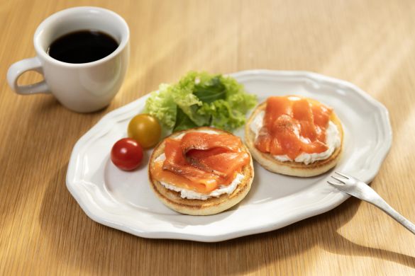 アケミンさん夫妻の超熟のある食卓 共働きの40代夫婦で、平日はバタバタな毎日を送るわが家。普段より少し遅く起きた休日は、自宅でブランチをまったり楽しむのが、最近の過ごし方です。  外食も好き。でも毎日家で食べるものはできる範囲でちゃんとこだわりたい。そんな思いから選んだのが、「超熟イングリッシュマフィン」。  週末のブランチの定番は、華やかな見た目で気分も上がる「サーモン&クリームチーズのオープンサンド」。