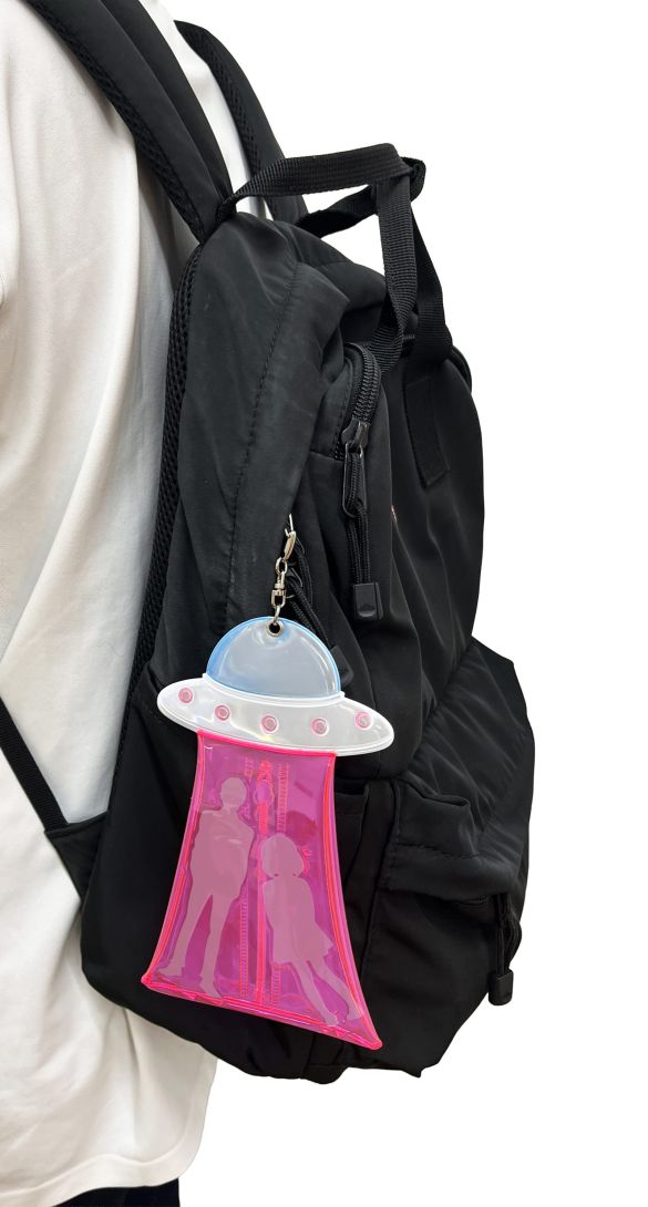 UFO部分にはリフレクター素材が用いられている。当たった光を反射し、暗い場所でキラッと怪しげに光るUFOを体現した。バッグなどにつけておけば、暗がりでの視認性を高めてくれる効果も。