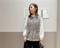 1つ目のメリットは、ジレは袖がない分、重ねるブラウスの色によって雰囲気が変えられるところ。ジャケットほど主張が強くないため、ジレの下に着るブラウスを何色にするかで雰囲気をコントロールしやすいのです。
