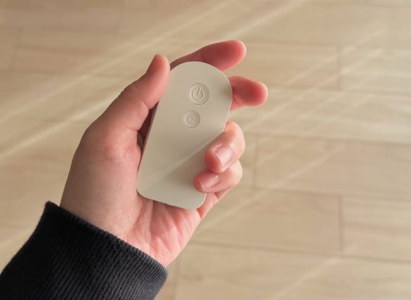 下のボタンはランプ色ボタン。温かみのある色から青みがかった色まで、なんとランプの色も3種類あり、使う場所や好みによって切り替えることができるんです。