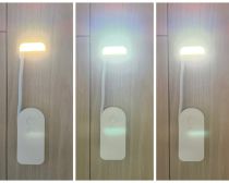 約縦7.5×横3.7×厚さ1.8cmと、収納時には手のひらに収まるほど小さい3COINSの「コンパクトLEDブックライト」(税込880円)。