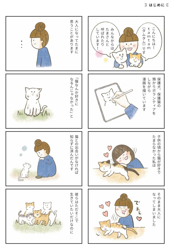 『たまさんちのホゴネコ』(世界文化社 2023年)、『たまさんちのホゴネコ2』(世界文化社 2026年1月)は、tamtamさん自身の経験をつづったエッセイ漫画です。登場するのは、体だけではなく心にも傷を負った猫ばかり。