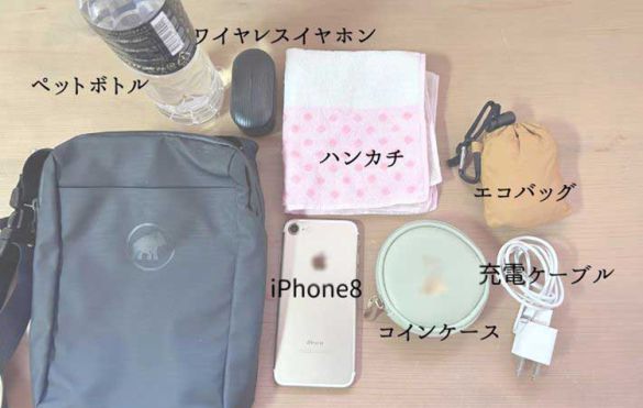 ペットボトルをポーチの中に入れたい場合は、荷物を厳選したほうがいいでしょう。