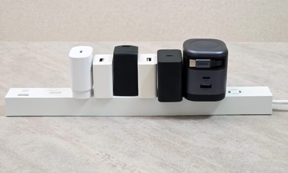 大活躍したのは、PC周辺機器・サプライ製品の総合メーカー『サンワサプライ』の『700-TAP082-15W』という電源タップです。 『サンワサプライ』の電源タップ商品特徴 ・縦向きにも横向きにもさせる自由な差込口。 ・差込口の互いの距離を考慮して配置。 ・8個の差込口で多数の機器を同時に接続。 ・1.5m のロングケーブル仕様で使いやすい。 ・机上や床面でズレにくい滑り止め加工済み。 Amazonで詳細を見る>>>  最大の特徴は、目を引く特殊な差込口でしょう。  縦向き・横向きの両方に対応しており、しかもACアダプタのサイズや形状、隣との距離を考慮した設計になっている優れものです。 『サンワサプライ』の電源タップ さらに驚きなのが、2つの差込口の間に、またがるようにしても使えること! 『サンワサプライ』が車輪差しと呼んでいる方法に、「こんなことができるのか」「ありそうでなかった」と驚きました。  通常なら諦めてしまうような場面でも、『サンワサプライ』の電源タップなら大丈夫。ムダな隙間を空けることなく、効率的にさし込むことができますよ。  例えば、こんな数の充電器をさしても問題ありません。 『サンワサプライ』の電源タップ 右端を車輪差しにすることで、きれいにまとまりました。 Amazonで詳細を見る>>>  さらに感動したのが、コンセントの差込口とは別に、USB-CとUSB-Aが1ポートずつ搭載されていることです! 『サンワサプライ』の電源タップ USBポートに直接ケーブルを接続すれば、スマートフォンの急速充電も簡単。差込口を消費せず充電できるのは、最高でしたよ。 『サンワサプライ』の電源タップ「USBポートはいらないかも」「なくて困らないかな」という人は、USBポートの代わりに、落雷時の故障を防止する雷ガード機能を備えたモデルがおすすめです。 『サンワサプライ』の電源タップ 雷ガード機能付き電源タップの詳細を見る>>>  コンセント周りに悩んでいる人すべてに紹介したいのが『サンワサプライ』の電源タップです! 『サンワサプライ』の電源タップ商品の評判 ・本当に便利。これのおかげでムダな電源タップが減った。 ・本体自体がスリムで使いやすい。置く場所に困らない。 ・たくさんの電源が確保できて重宝しています。 ・USBポートがあるのが地味にいい。画期的すぎる。 USBポート付き電源タップの詳細を見る>>>