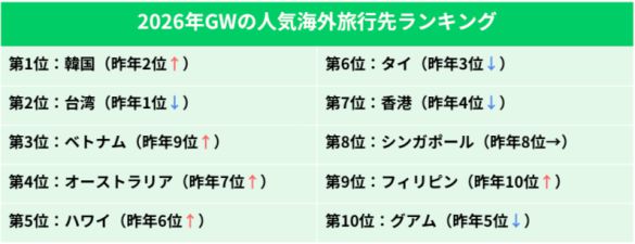 2026年GWの人気海外旅行先ランキング