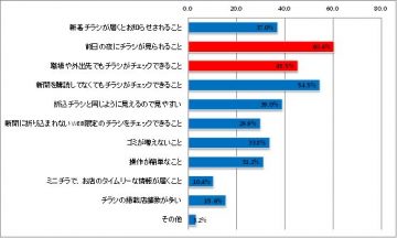 確かに、自分の時間を持ちやすい夜のうちに買い物の計画を立てておけるのは便利。「職場や外出先でもチラシがチェックできること」(45.5%)は、仕事で忙しい主婦がスキマ時間をうまく使っているわけですね。なるほど、いつも手元にあるスマホだから、できることですよね。