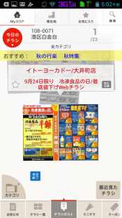 Myエリアを設定すると、「今日のチラシ」として、翌日のチラシが23枚も出てきました!どれも我が家から徒歩~電車を使って15分ほどの圏内です。こんなにセールやってるの?