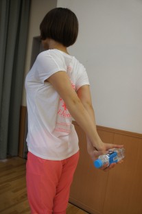 ■ペットボトルを後ろの手でクロスさせて持つ