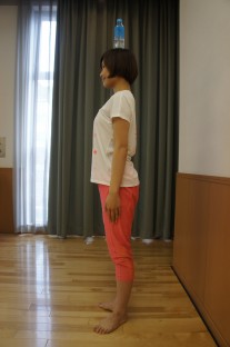 ・かかとをつけて足をハの字でまっすぐ立つ