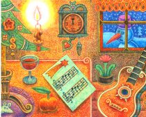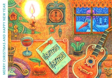 <疲れ切った両親と寝ぼけ眼の子供たち。そしてクリスマスのお祝いが終わって夜のしじまに消えていく客人たちを描いたものだ>