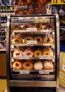 セブン‐イレブンのドーナツの全国展開は2015年からですが、既に京都・大阪で先行販売しているというニュースを聞き、探しに行ってまいりました。お店に入るやいなや、レジカウンター中心部にピッカピカのドーナツケースを発見。清潔感のあるモダンなデザインに、セブン-イレブンの本気感を感じます。