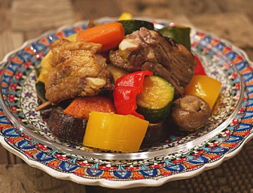 塊肉(なんでも良い) 300g、好みの野菜(玉ねぎ、ニンジン、なす、パプリカ、ズッキーニ、マッシュルーム、じゃがいも等) 5種類~7種類をそれぞれ数個ずつ、ミックススパイス 大さじ2、オリーブオイル 大さじ3、ニンニク 1片、オイスターソース 大さじ2、鶏ガラスープの素 大さじ2、醤油 大さじ2。砂糖 大さじ1、酒 大さじ2、塩・ブラックペッパー 適宜