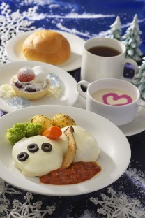 「プラザパビリオン・レストラン」が提供する、スペシャルセット(¥1,940)はチーズのホワイトソースをかけたハンバーグに注目。そうオラフをイメージしているのです。いや~、まさに食べるのがもったいない!