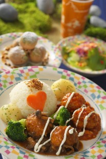 映画をよーく思い出してください。「グランマ・サラのキッチン」のスペシャルセット(¥1,520)は谷に住むトロールたちをイメージしています。ふわふわした毛並みがライスのあたりによく出ていますよね。メインのミートボールはトマトソースとデミグラスソースの2種類が味わえます。